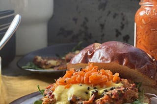 Crunchy veggies, curry, turmeric, and chickpea flour create a unique veggie burger full of fiber and protein. Once pan-seared or baked, these bhaji…